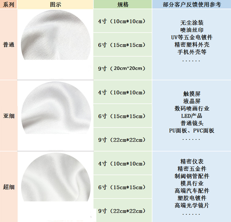 柔軟,質(zhì)地平滑,不會(huì)對(duì)擦拭物表面產(chǎn)生傷害