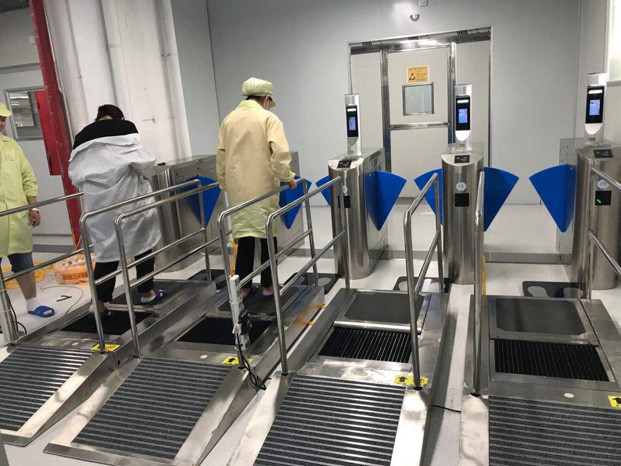 安裝設(shè)備:1.2米鞋底清洗機(jī)、4通道靜電測試翼閘門禁、人臉識別考勤機(jī).