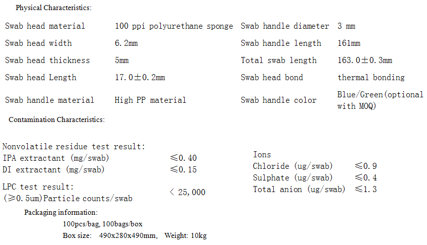Purestat® swabs possess good quality and cleaning capability. It is used for cleaning HDD components, optics instrument, medical device or vacuum equipment ect. Swab head construction provides good particle and residue removal without any abrasion. Unique thermal bonding and cleaning process ensure a minimum of particle shedding from foam seal. The swab handle is made from a patented inherently polymer to provide clean, permanent protection without contributing particulate contamination to the clean-room.