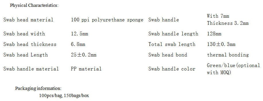Swab head is made of polyurethane sponge and possesses excellent absorptive capacity
