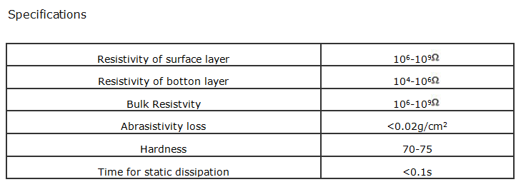 Anti-static rubber mat is made by anti-static and conductive layer of ruber. It is designed to elimate electrostatic charges from operators, tooling, part boxes, packaging bags, component,etc. It can protect the products from damge by the electrostatic acculated on the working table. It is flat and not curl and not affected by humidity. It is strong resistance to abrasion, chemicals, heat resistant,easy to clean and maintain.