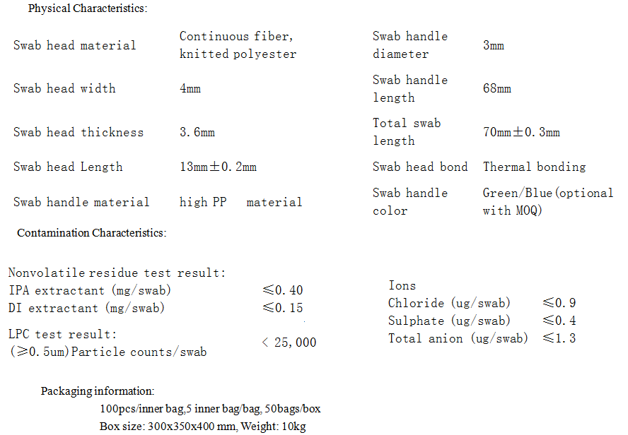 Purestat® cleanroom polyester swab have good quality and cleaning capability, it is designed for cleanroom application. It is used for cleaning HDD, optics instrument, medical device or vacuum equipment. This model swab head is specially design, it can cleaning blemish and dust without any mark and no particle drop. The swab handle is made from a patented Inherently polymer to provide clean, permanent protection without contributing particulate contaminates to the cleanroom.