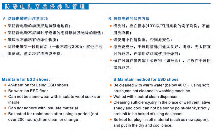 ESD shoes are adopting elecrtostatic dissipative material with PU or PUV for sole,make together with uppe,and then suture to make it more durable. The shoe is beautiful and compacet,especially the PU shoes with advanced wearable ability is 5times of commom PVC shoes is popular high quality ESD shoes in domestic and overseas.